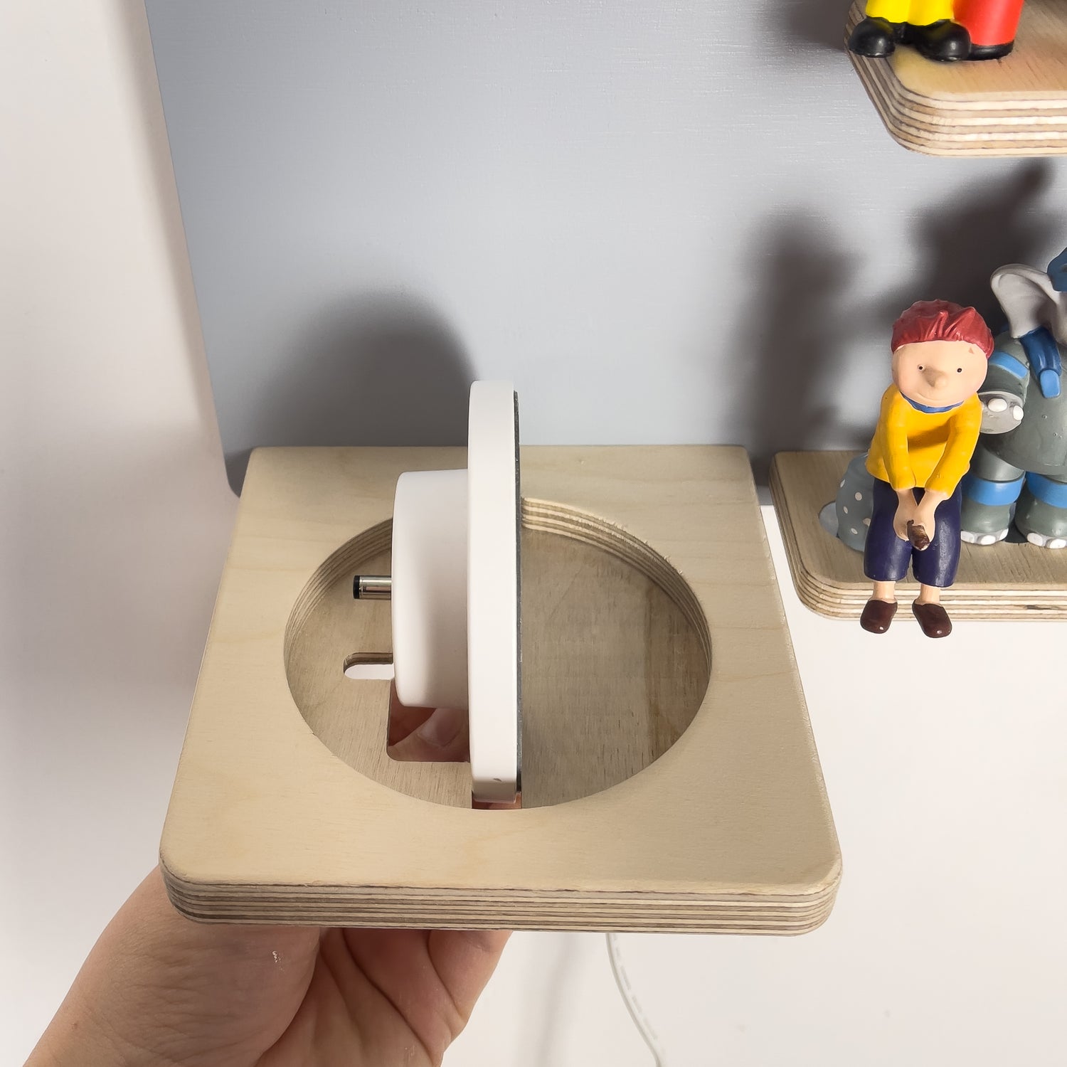 Mit unserer Toniebox-Ablage können Sie die Ladestation ganz bequem von unten einführen. So können Sie die Ladestation jederzeit wieder entfernen, ohne das Regal abnehmen zu müssen.